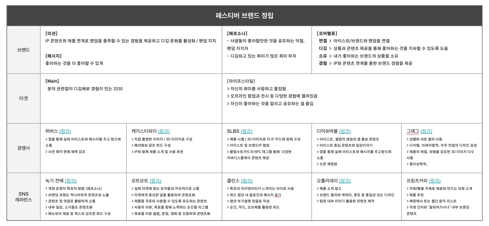- 페스티버만의 코어밸류 도출 / 슬로건 메시지 개발