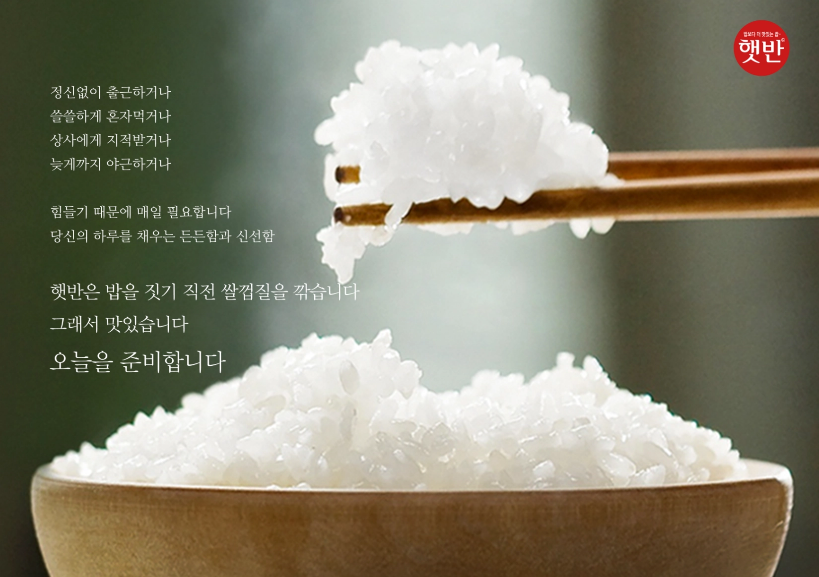 당일 도정 시스템에 의해 생산되는 햇반의 신선한 맛과 밥 본연의 든든함으로 소구