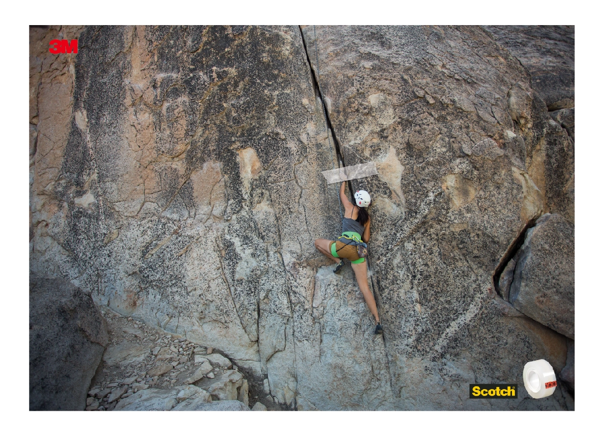 스카치 테이프의 접착력을 강조하기 위해 과장된 비주얼로 표현