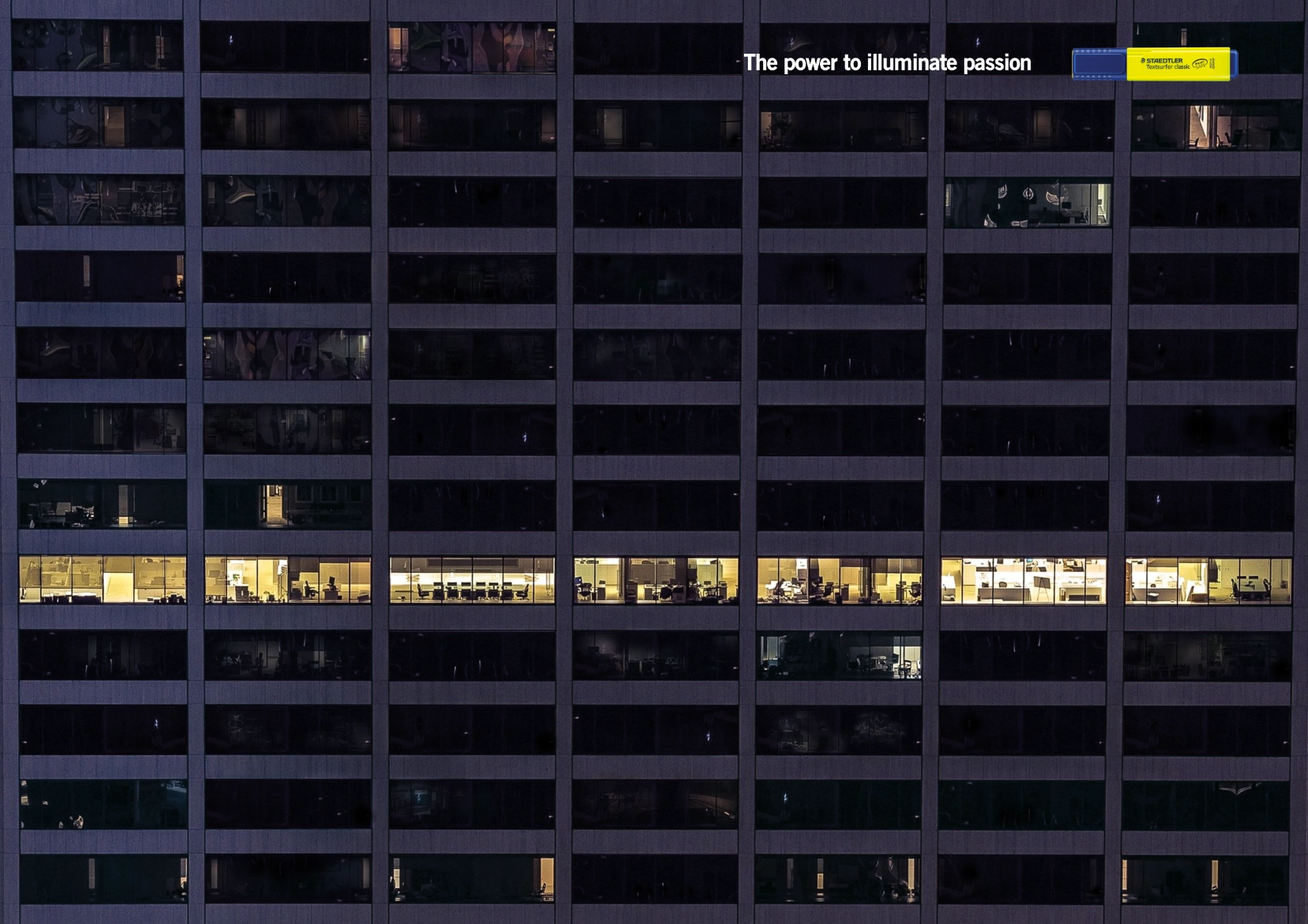 야근하며 내일 업무를 준비하는 사람들을 돕는 서포터 역할 컨셉으로 스테들러 형광펜을 소구